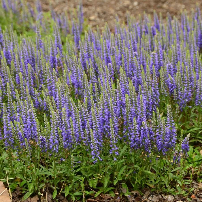 Buy Blue Sprite Speedwell online. ‘Blue Sprite’ combines the habit of a groundcover Veronica and the upright flower spikes of taller cultivars, creating a new look for this alpine hybrid in sunny gardens. Small, emerald green leaves form a dense carpet of disease resistant foliage. Plump spikes of brilliant violet flowers attract pollinators. Bred by Dr. Jim Ault.