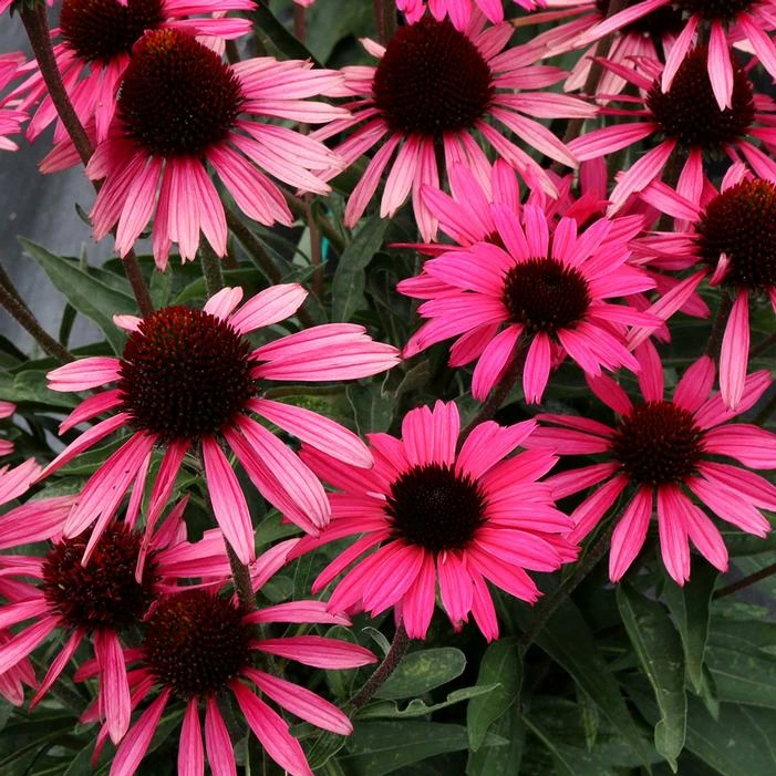 Buy Dark Shadows™ Wicked Coneflower online. One of Terra Nova®’s most interesting Echinacea hybrids! Very upright with glowing watermelon-pink held in a perfect bouquet pattern. Dense, pine-green foliage covers this plant right to the ground. Dark, chocolate brown stems and matching eye contrast perfectly on this amazing plant. Stunning when planted in large groups. A true standout as a specimen!