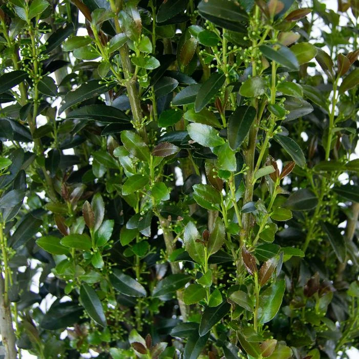 Buy Jade Lance® Holly online. This extremely narrow growing hybrid holly is part of the Aim High series introduced by Gardener’s Confidence®. Glossy dark green leaves are tightly produced, and new growth is beautiful burgundy. It resembles the smoother leaved Japanese hollies, and will look like a green obelisk in your landscape! Terrific when used to frame entryways and gates, as well as a stand alone specimen.