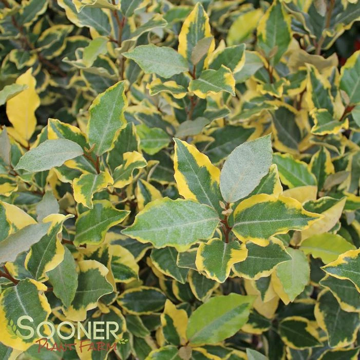 Buy Olive Martini™ Elaeagnus online. Olive Martini™ Elaeagnus is a very attractive yellow and gold variegated leafed shrub. Its silvery new growth give this plant season long appeal. It is evergreen, and fragrant, and will grow in the sun or the shade. To top it off it grows extremely fast. It is the perfect hedge plant and great when used for other barriers in mild climates.
