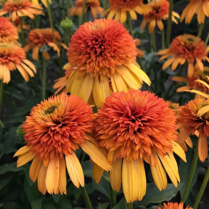 Buy Orange Fascinator Coneflower online. This one is fun! Loads of bright orange flowers that look like an English lady’s hat with a giant fuzzy orange cone, the upright and clumping habit will stay tidy in the garden. These fully doubled orange flowers are a definite eye-catcher.