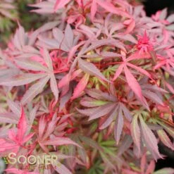 Buy Shaina Dwarf Upright Japanese Red Maple online. Dark red leafs in spring turning bronze in summer. A very compact upright grower. Leaves are small and closely arranged as to form layers of foliage. Very good for small areas and low maintenance. A Sooner favorite!