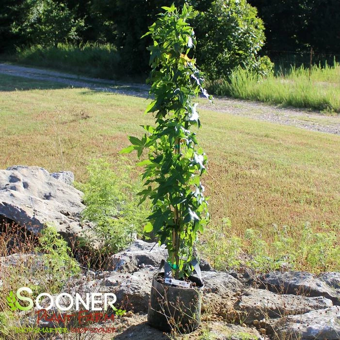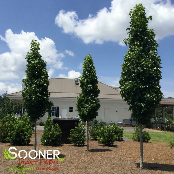 Buy Slender Silhouette Sweetgum online. A stunning columnar tree perfect for a garden accent. Falls colors are a striking orange, yellow and red. Trees only occasionally set fruit.