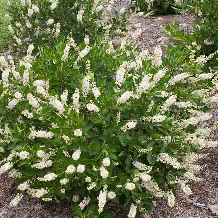Buy Vanilla Spice® Summersweet online. Is a standout plant with attractive glossy, dark green leaves and extra large flowers. The individual flowers are fragrant, pure white and roughly double in size compared to typical. An excellent summer flowering shrub.